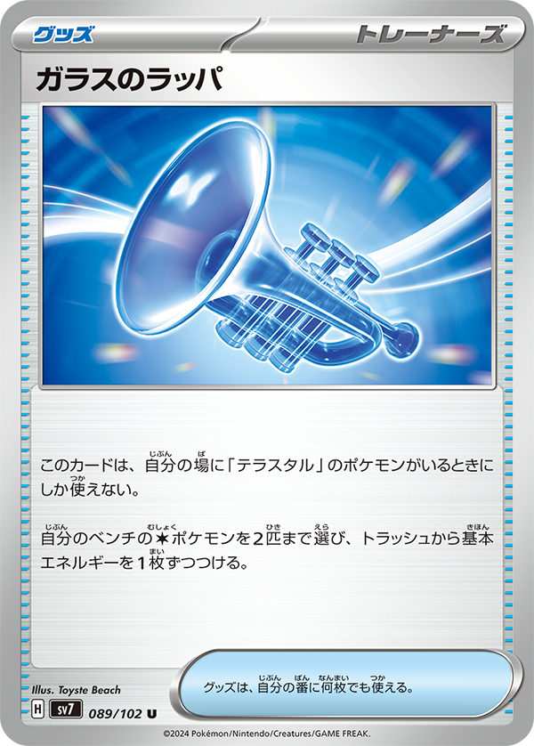You can use this card only if you have a Tera Pokémon in play. Choose up to 2 of your Benched Colorless Pokémon and attach a Basic Energy card from your discard pile to each of them.