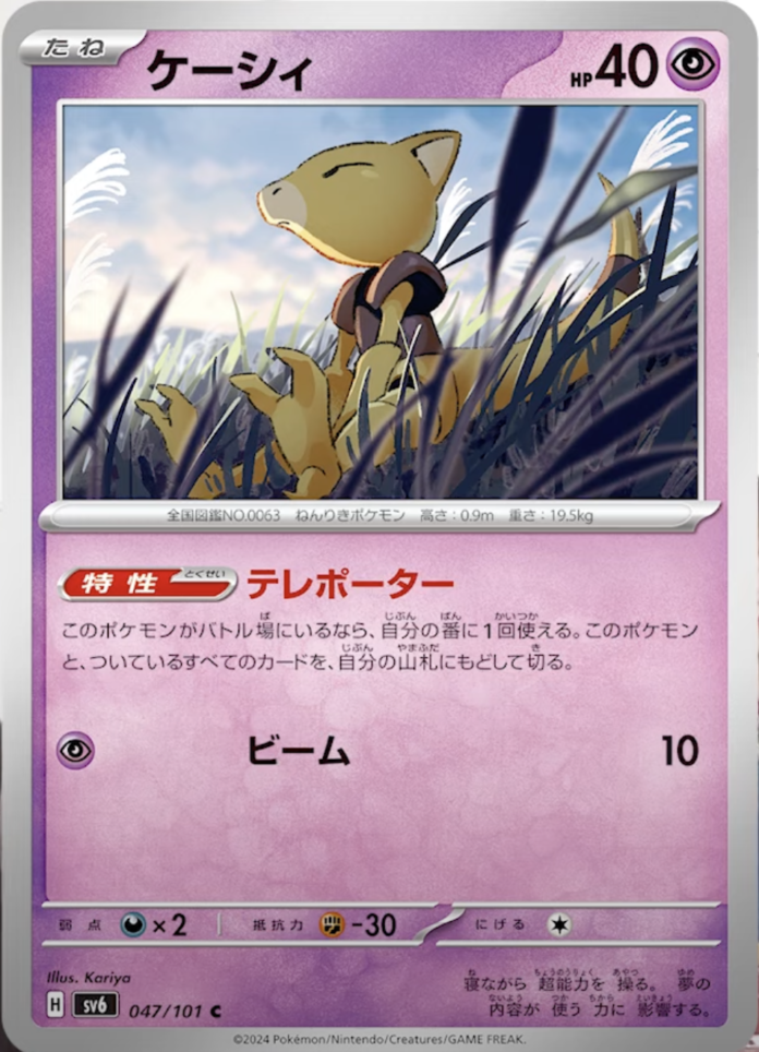 ホーム新弾カードリスト変幻の仮面ケーシィ 新弾カードリスト変幻の仮面 ケーシィ 2024-04-03 シェア TwitterLINEFacebookWhatsAppCopy URL 特性 テレポーター このポケモンがバトルバにいあるなら、自分の番に1回使える。このポケモンと、ついているすべてのカードを、自分の山札にもどして切る。 ビーム 10 Sourcehttps://www.youtube.com/watch?v=uWCmmRc1wgw Tags超タイプ シェア TwitterLINEFacebookWhatsAppCopy URL 前の記事シティリーグTOP8 ルギア次の記事ユンゲラー 関連する記事 楽園ドラゴーナ ラティアスex 2024-08-31 スターターセット テラスタイプ ニンフィアex 2024-08-04 変幻の仮面 ペロッパフ 2024-04-06 - Advertisment - 上位入賞デッキレシピドラパルトex悪リザードンexルギアVSTARその他サーナイトexロストバレットロストギラティナVSTARカビゴンLOパオジアンexゲッコウガex Most Popular シティリーグ優勝 未来テツノカイナ 2024-03-13 シティリーグ準優勝 悪リザードン ビーダル型 2024-03-13 ジャパンチャンピオンシップシリーズ2025 日程 2024-06-03 シティリーグ2024 シーズン3 オープンリーグ結果 トーナメントセンターバトロコ 本厚木駅前 2024-03-13 もっとロードする