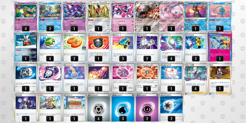 ホームタイプ別デッキレシピロストバレットシティリーグTOP8 ロストバレット タイプ別デッキレシピロストバレット優勝・入賞デッキレシピシティリーグ都道府県別京都府 シティリーグTOP8 ロストバレット 2024-04-28 シェア TwitterLINEFacebookWhatsAppCopy URL TOP8 Sourcepokemon-card.com Tagsウッウかがやくゲッコウガガチグマexキュワワーテツノツツミプライムキャッチャーマナフィヤミラミラブトロス シェア TwitterLINEFacebookWhatsAppCopy URL 前の記事シティリーグTOP8 ルギアVSTAR次の記事シティリーグTOP2 ルギアVSTAR 関連する記事 シティリーグ タケルライコex|シティリーグTOP8|ステラミラクル環境|2024年09月08日 2024-09-08 シティリーグ ルギアVSTAR|シティリーグTOP8|ステラミラクル環境|2024年09月08日 2024-09-08 シティリーグ ロストバレット|シティリーグTOP2|ステラミラクル環境|2024年09月08日 2024-09-08 - Advertisment - 上位入賞デッキレシピドラパルトex悪リザードンexルギアVSTARその他サーナイトexロストバレットロストギラティナVSTARカビゴンLOパオジアンexゲッコウガex Most Popular シティリーグ優勝 未来テツノカイナ 2024-03-13 シティリーグ準優勝 悪リザードン ビーダル型 2024-03-13 ジャパンチャンピオンシップシリーズ2025 日程 2024-06-03 シティリーグ2024 シーズン3 オープンリーグ結果 トーナメントセンターバトロコ 本厚木駅前 2024-03-13 もっとロードする