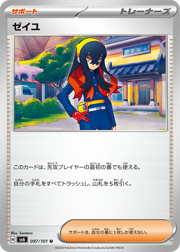 ホーム新弾カードリスト変幻の仮面ゼイユ 新弾カードリスト変幻の仮面 ゼイユ 2024-03-16 シェア TwitterLINEFacebookWhatsAppCopy URL このカードは、先攻プレイヤーの最初の番でも使える。自分の手札をすべてトラッシュし、山札を5枚引く。 Sourcepokemon-card.com Tagsサポート シェア TwitterLINEFacebookWhatsAppCopy URL 前の記事むしとりセット次の記事スグリ 関連する記事 超電ブレイカー シアノ 2024-09-28 超電ブレイカー ミカンのまなざし 2024-09-28 楽園ドラゴーナ サーファー 2024-08-31 - Advertisment - 上位入賞デッキレシピドラパルトex悪リザードンexルギアVSTARその他サーナイトexロストバレットロストギラティナVSTARカビゴンLOパオジアンexゲッコウガex Most Popular シティリーグ優勝 未来テツノカイナ 2024-03-13 シティリーグ準優勝 悪リザードン ビーダル型 2024-03-13 ジャパンチャンピオンシップシリーズ2025 日程 2024-06-03 シティリーグ2024 シーズン3 オープンリーグ結果 トーナメントセンターバトロコ 本厚木駅前 2024-03-13 もっとロードする